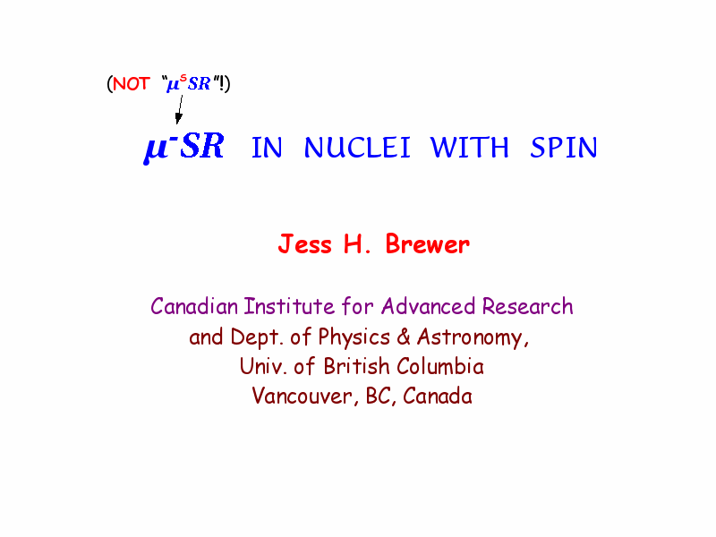 Verbally acknowledge Khashayar Ghandi and the staff of the TRIUMF µSR User Facility; except for their help, “I did it all by myself!” [½ min]